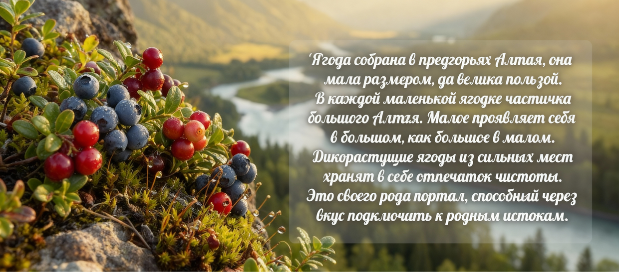 Малое проявляет себя в большом, как большое в малом. Дикорастущие ягоды из сильных мест хранят в себе отпечаток чистоты. Это своего Рода портал, способный через вкус подключать к родным истокам.